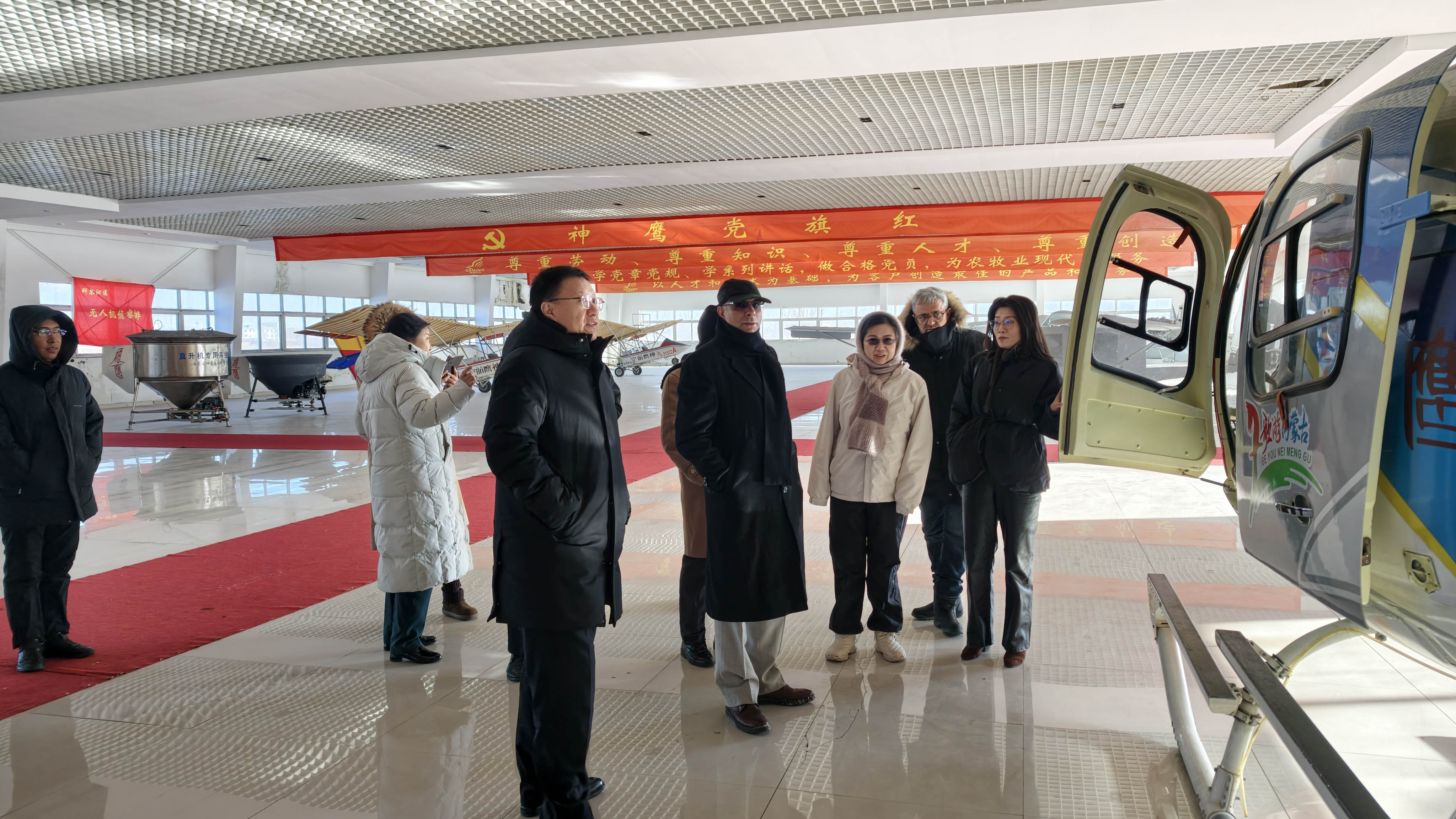 當(dāng)天上午,納辛航空董事長阿巴西?阿米尼一行到訪內(nèi)蒙古神鷹航空集團(tuán)總部。在神鷹航空集團(tuán)董事長邱志剛、總經(jīng)理孫學(xué)慧及公司核心管理人員的陪同下,參觀了公司飛機(jī)展廳與文化墻,并觀看了企業(yè)宣傳片,深入了解神鷹航空的發(fā)展歷程、企業(yè)實(shí)力與業(yè)務(wù)布局。